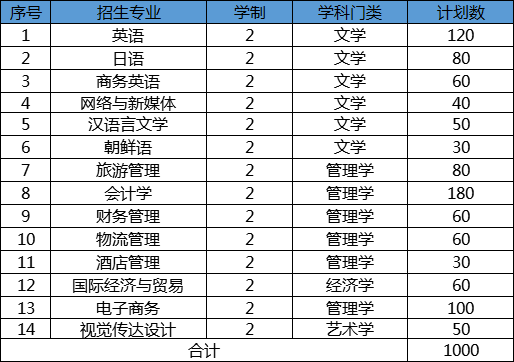 安徽外国语学院2020普通专升本招生计划和考试科目汇总